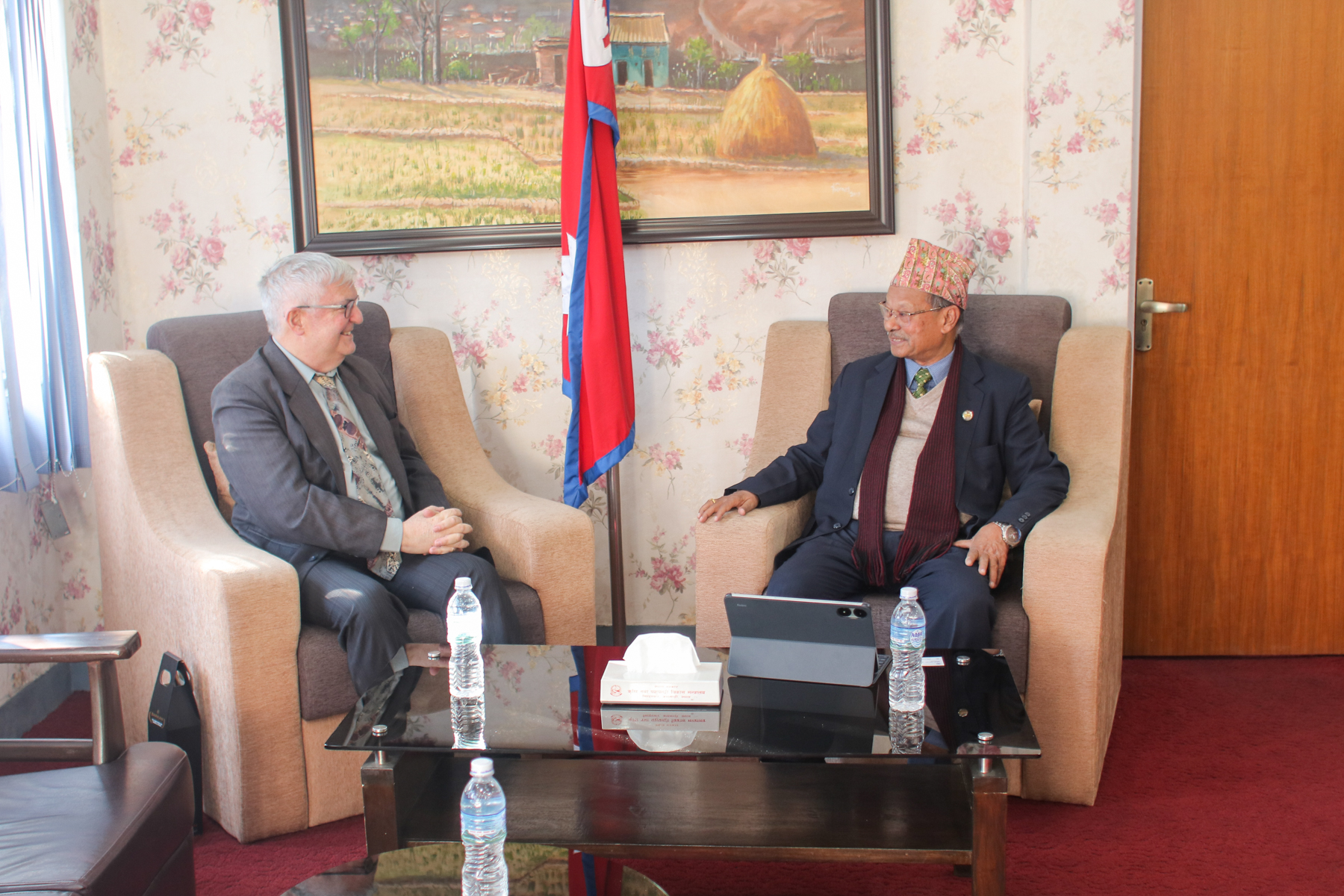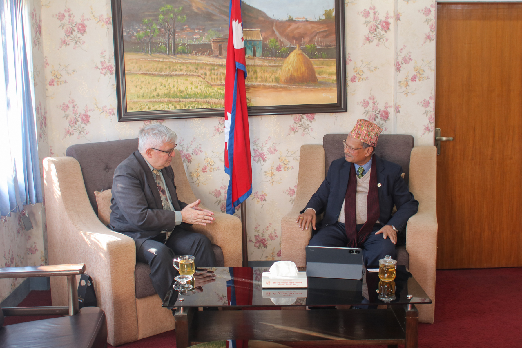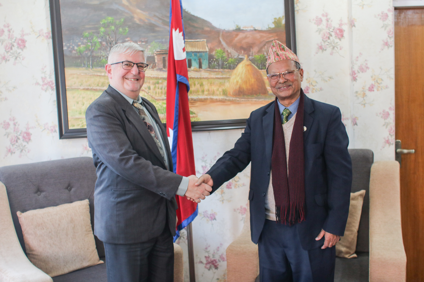माननीय कृषि तथा पशुपन्छी विकास मन्त्री डा. मदन प्रसाद परियारज्यूसंग H.E. Mr. Shmulik Arie Bass, Ambassador of Israel, ले मन्त्रालयमा गर्नुभएको शिष्टाचार भेटघाट